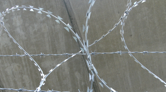 Razor wire is a central strand of high tensile wire, and a steel tape punched into a shape with barbs.